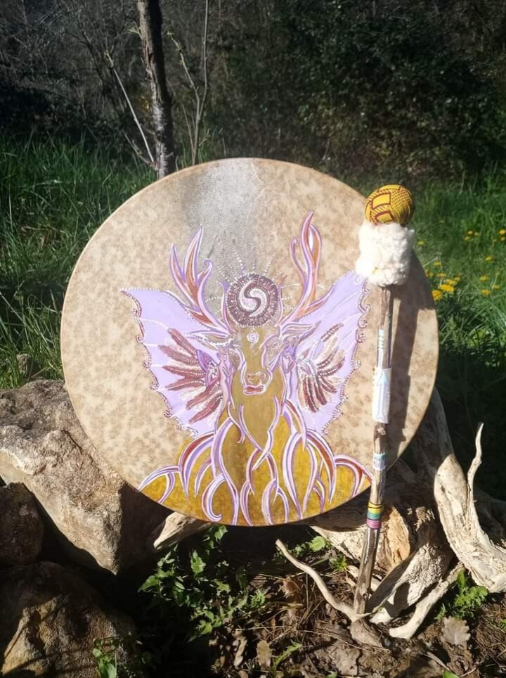 Je vous propose de créer votre tambour, votre compagnon de voyages, en canalisation votre fréquence et celle des esprits gardiens de chaque élément qui le compose. Ses vibrations vous guideront en profondeur dans l'ANCRAGE DU CŒUR de la Terre et de votre propre cœur. Chaque TAMBOUR est UNIQUE et RÈVÈLE VOTRE MAGIE INTÉRIEURE.